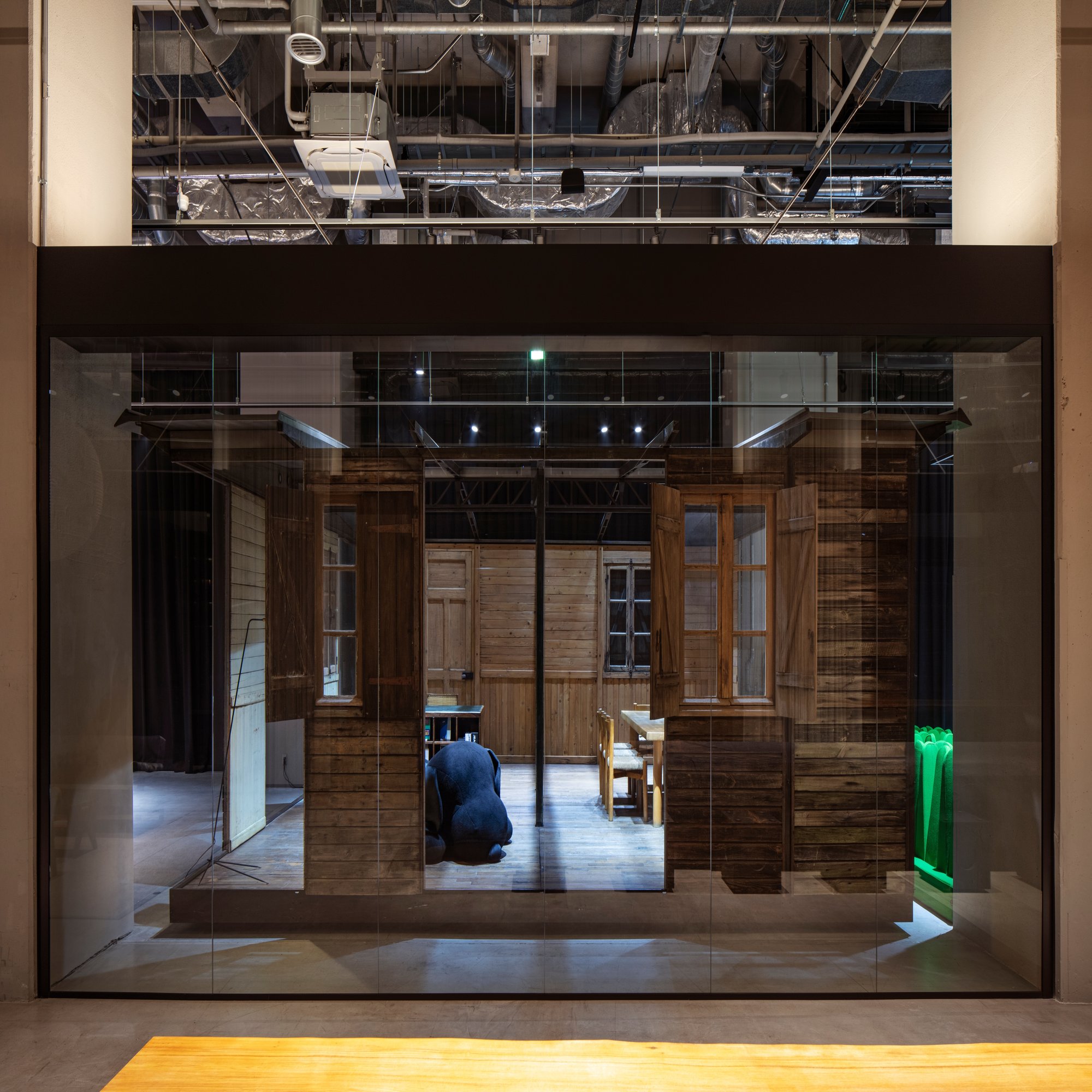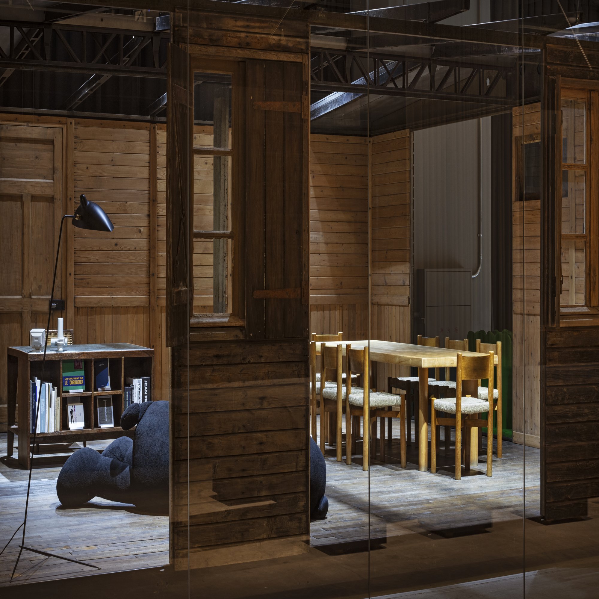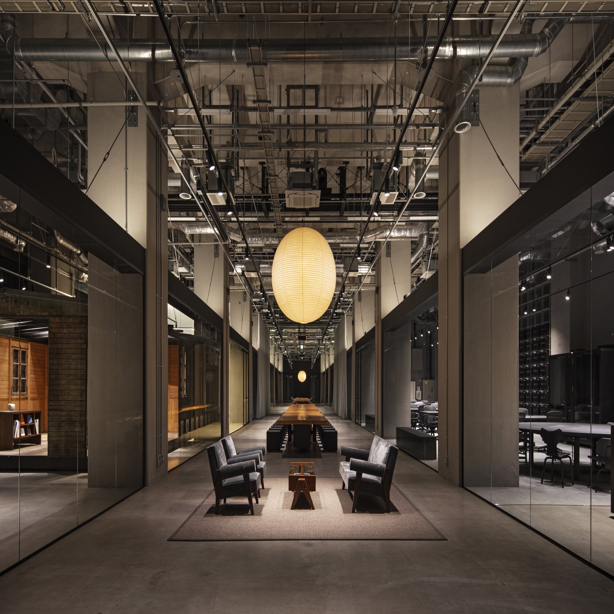 志甫:ガラス越しにものを見せるって、ものに価値を与えて見立て直すという面白い効果があると思っていて。プルーヴェハウスはアート作品でもあるので、アートの中を巡る体験としてプルーヴェハウス内を歩くのももちろんいいのですが、ガラス越しに眺めるのも“博物館っぽさ”があって面白いんです。オフィスでありながら、ガラスの向こうの何気ない景色がどこか展示空間に感じられるような、そんな空間性はつくれたのではないかと思います。