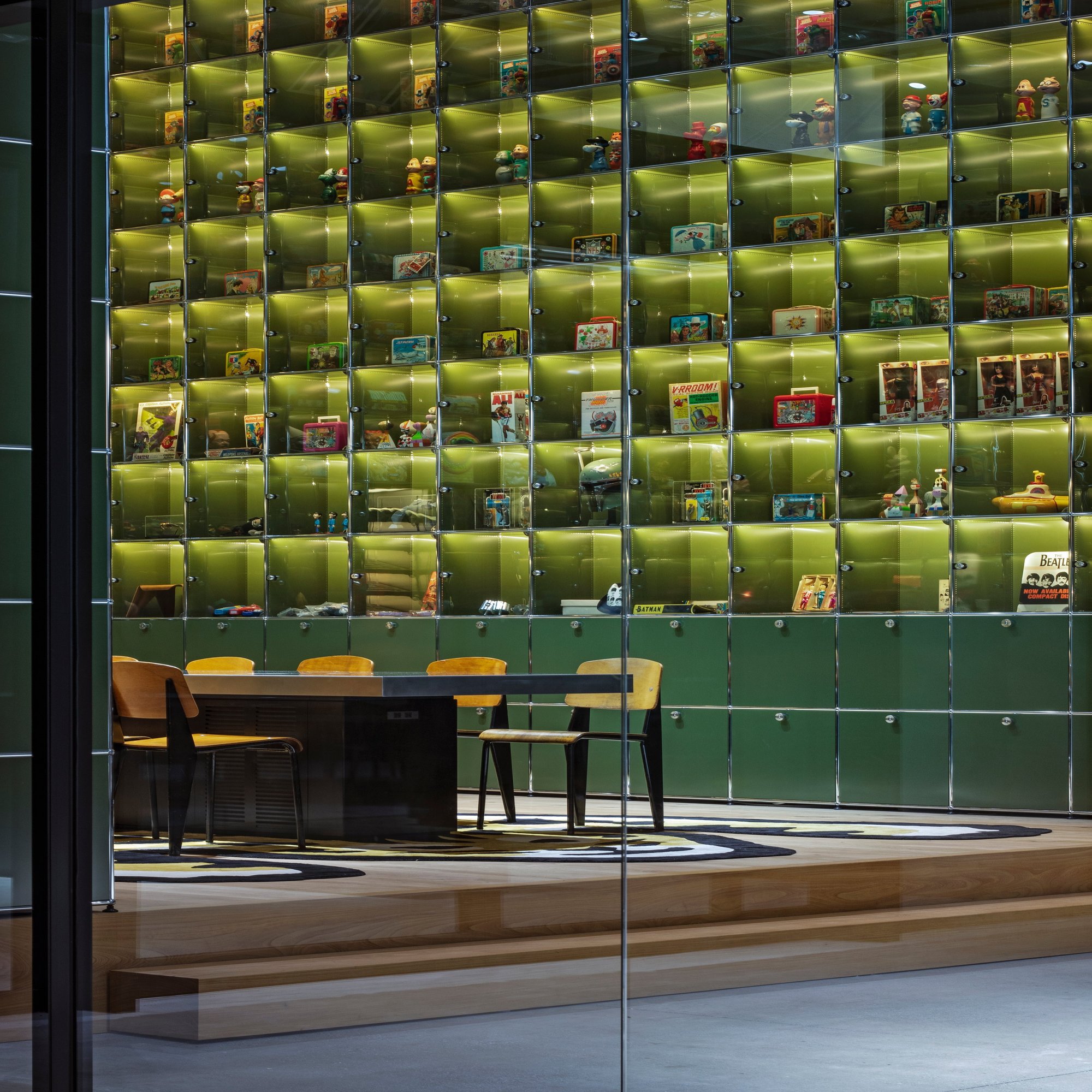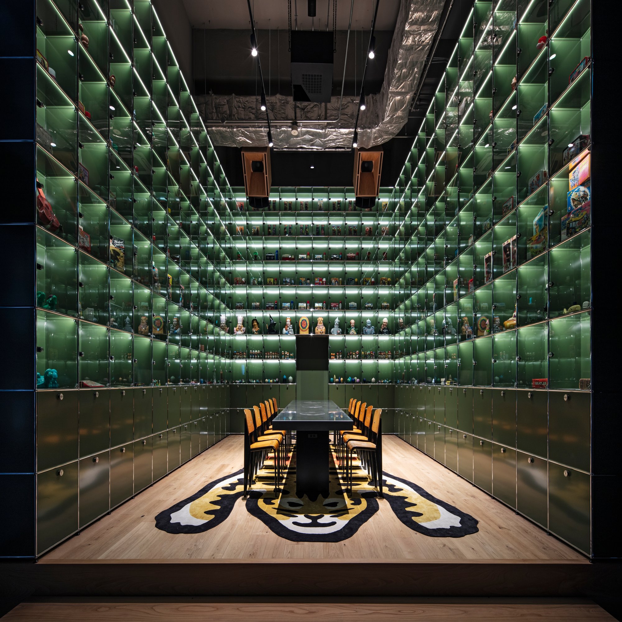 松井:まさに“NIGOさんの頭の中に没入する空間”です。USMハラーだけで空間を構成するというのはあまり見たことがなかったので、面白いんじゃないかと思って始めたのがきっかけです。ディスプレイの数は全部で284個あり、その一つひとつにNIGOさんのコレクションが収納されています。