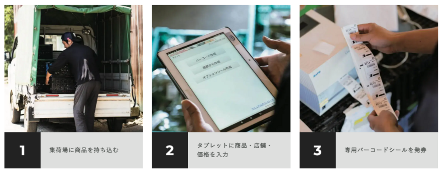 下記、生産者が集荷場に来場されてから売場に届くまでの流れとなります🥦🍆🍅