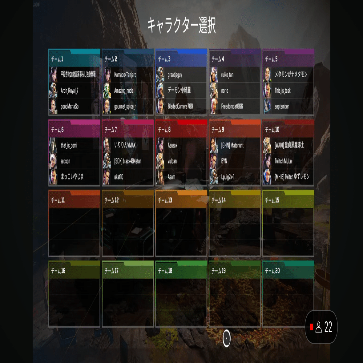 20:10~20:40 1試合目開始(ワールズエッジ)