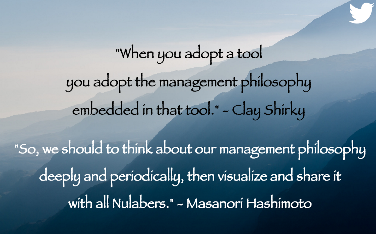 つまり、「あるプロダクトを会社で取り入れるということは、その提供者の思想も取り入れるということだ(Clay Shirkyさんの言葉)」「だから私たちは会社のフィロソフィーを磨き続けるのだ(弊社代表、橋本の言葉)」という話です。