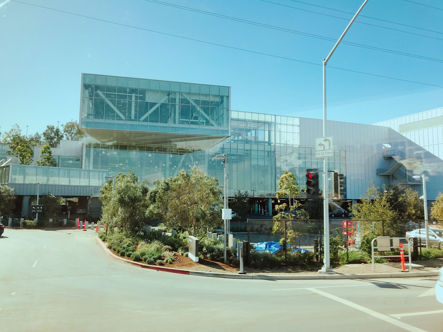 今回訪問したのは、新しくなって移転したてのFacebook本社。シリコンバレーの塩田が目の前に広がる広大な土地に、駐車場付きの横に広い本社はありました。