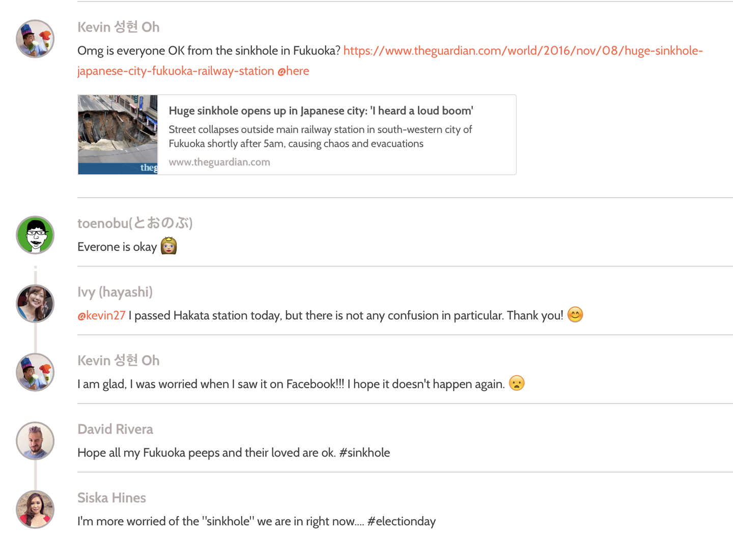 逆のこともあって、例えば福岡市内にて、あの有名な「穴」が空いたときに、USのヌーラバーから心配する声が届きました。結果、1週間ほどで埋まった穴ですが、このときに「逆に気にかけてもらえるのだな」と思いました。