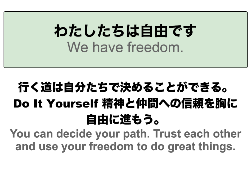 以前の行動指針以上に、こちらの言葉の方が、みんなの中でしっくり来ているものでした。