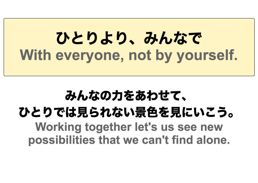 - ひとりではできないことも、みんなでならばできる。