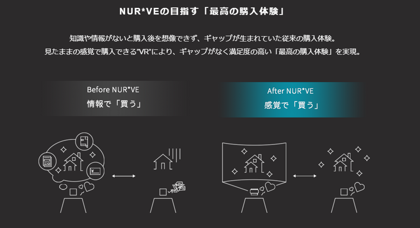 ナーブ目指している世界観をイメージしやすい言葉に変換すると「ナーブ=こと売りのアマゾン」に近いと思っています。ここでいう「こと売り」は「VRを通じた体験を誰でも理想的な形で恩恵を受けられるように提供する」という意味合いです。VR装置だけ提供するという「もの売り」ではなく、「VRを通じた新しい購入体験」を実現させる「こと売り」をナーブは目指しています。