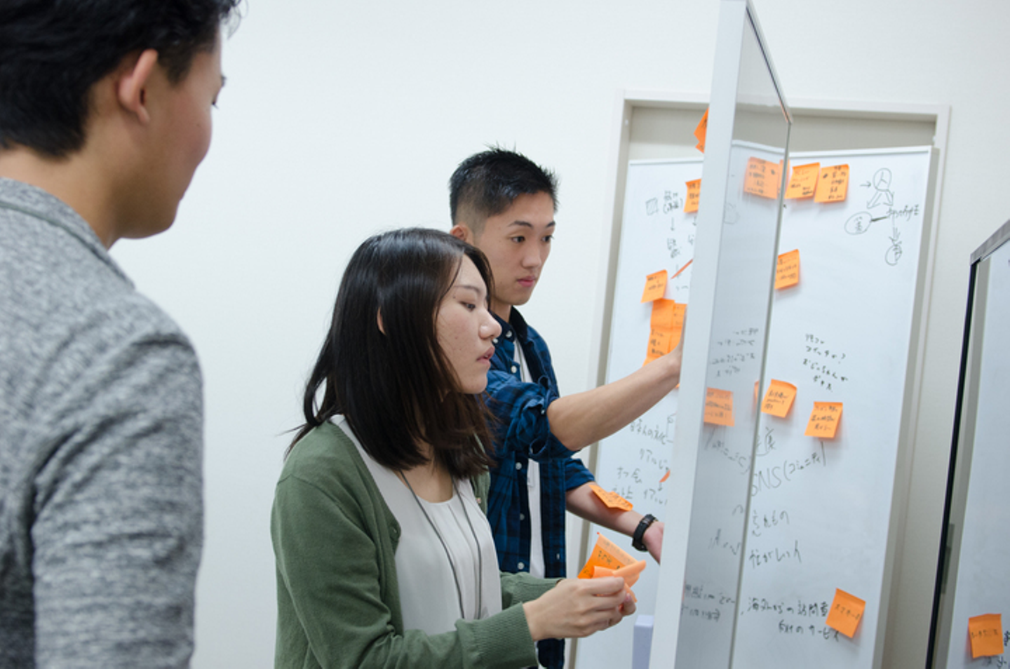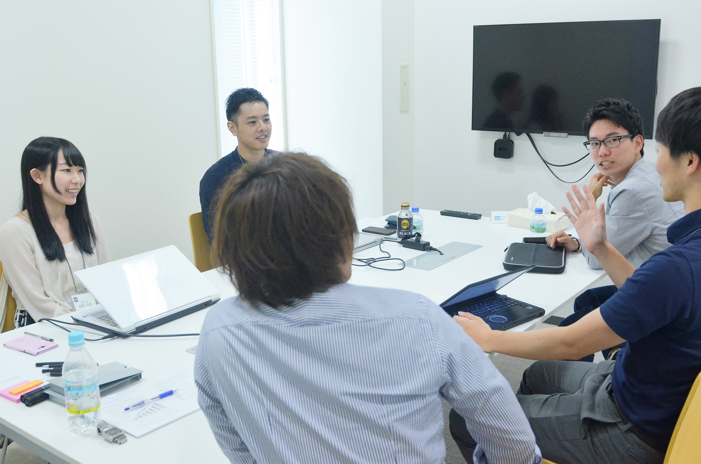 一般的なジョブ型のインターンでは、メンター役の社員は助言と評価に徹し、場合によってはたまにしか議論を見に来ないパターンも多いでしょう。MDBでは、メンター、サブメンター役の2名の社員は常に議論に参加し、学生と同様に「チームの一員」として動きます。具体的には、チームに欠けている要素に合わせて議論のディレクションを行い、更にはアイデア出し、資料作成などを行うこともあります。