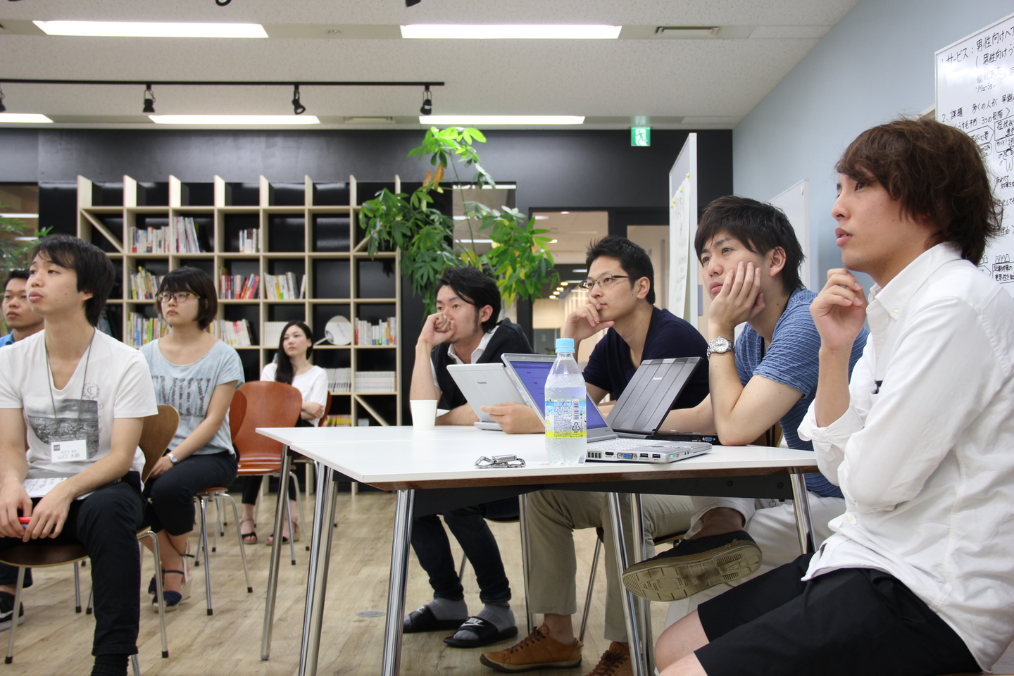 議論が始まり、皆真剣に取り組んでいます。最初は順調でも詰まり出すチーム、当初の事業領域から大きく転換するチーム、意見が分かれ全く進まないチームなど、各々課題を抱えつつも乗り越えていきます。