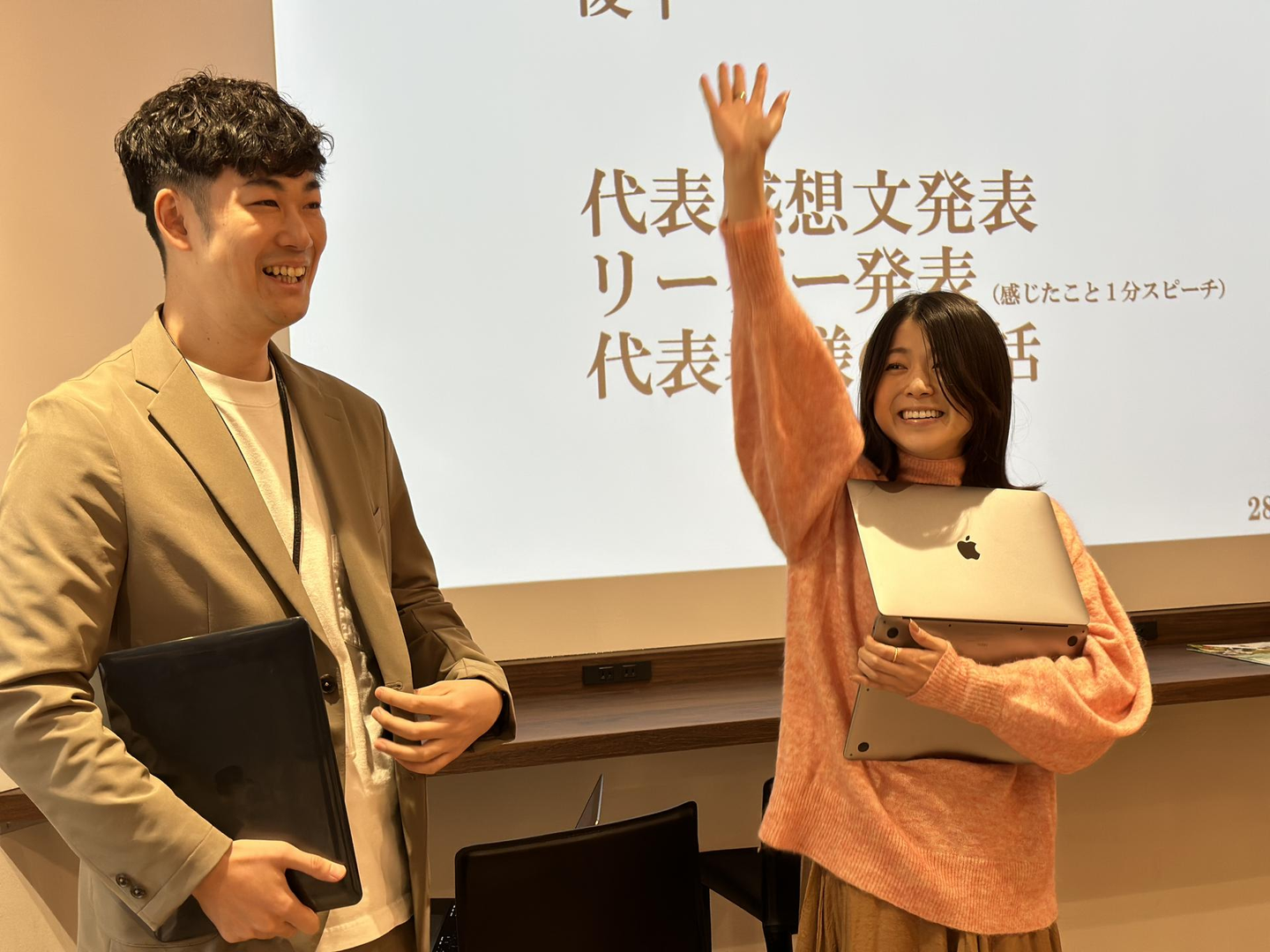人数が多いため1グループ4〜5名に分かれて話し合いを行うのですが、最後には全体で振り返りの時間を設けます。他のグループでは全く違う話題に注目していることもあって、更なる新しい視点や気づきを得ることができます。
