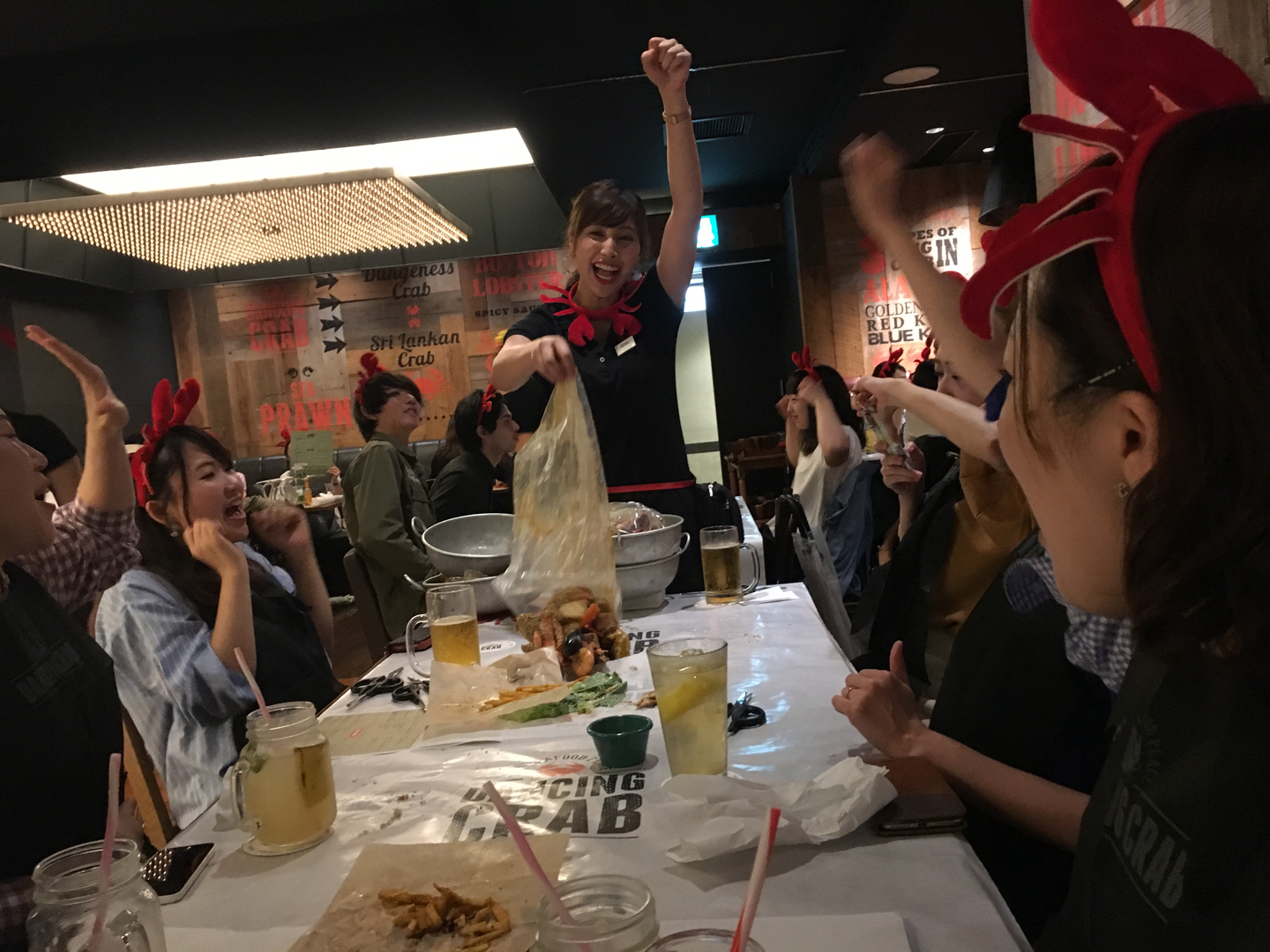 オウチーノでは「ガールズナイト」という女子会がたまに開かれます。去年から始まり、第1回は不思議の国のアリスのお店、第2回はHooters、そして第3回は最近話題の手づかみシーフードのお店・DANCING CRAB 東京へ!毎回おもしろいお店ばかりで、行く前からワクワクしています★
