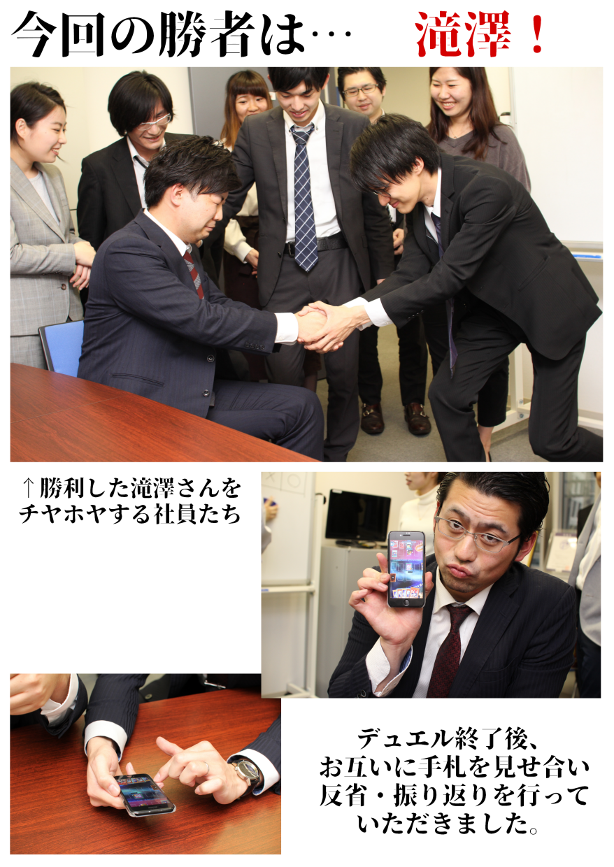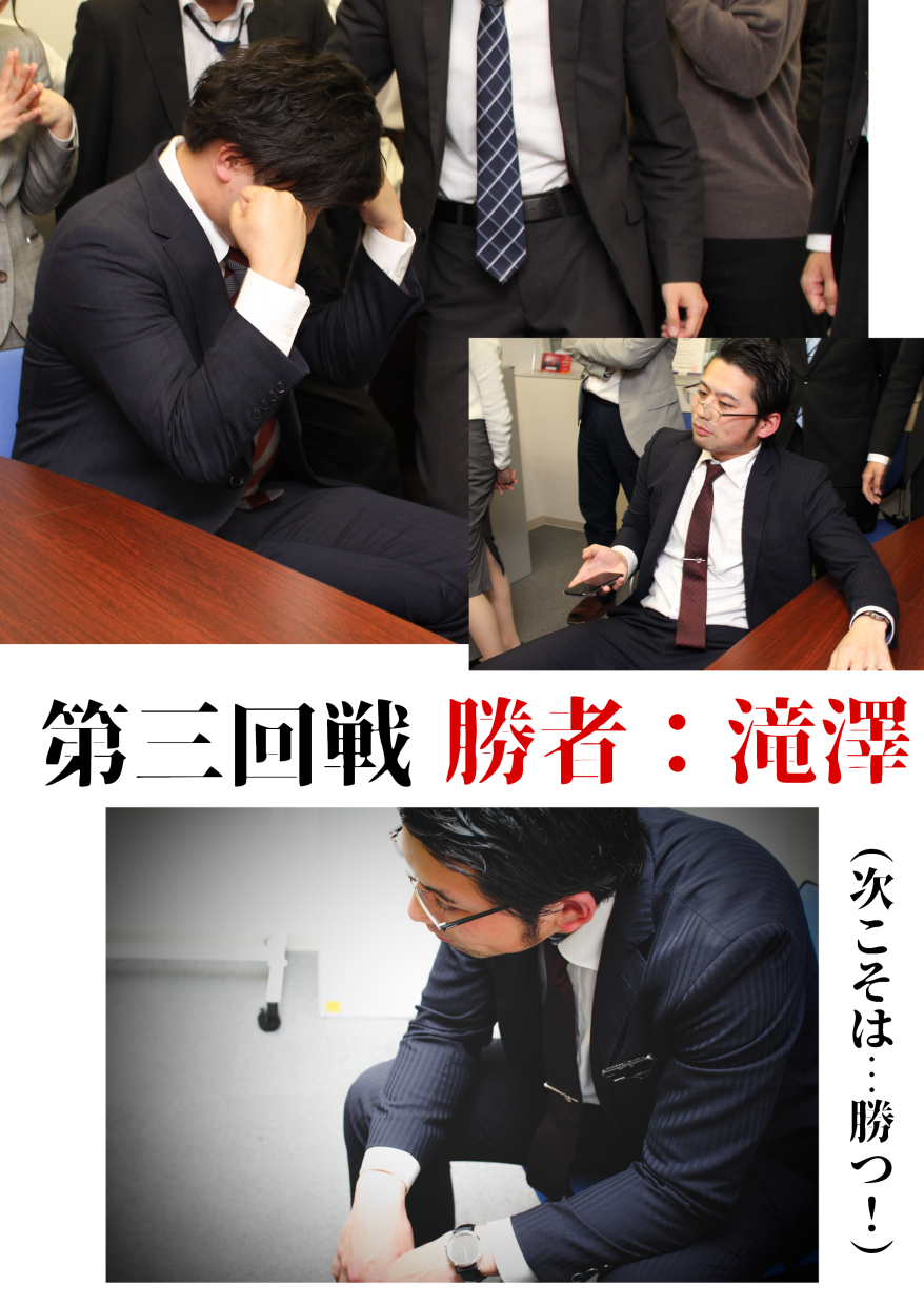 しかも役員と、先日ご紹介した新人の滝澤さん(紹介記事はこちら)の対戦というアツいカード!これはもう出来る限り盛り上げていくしかない!