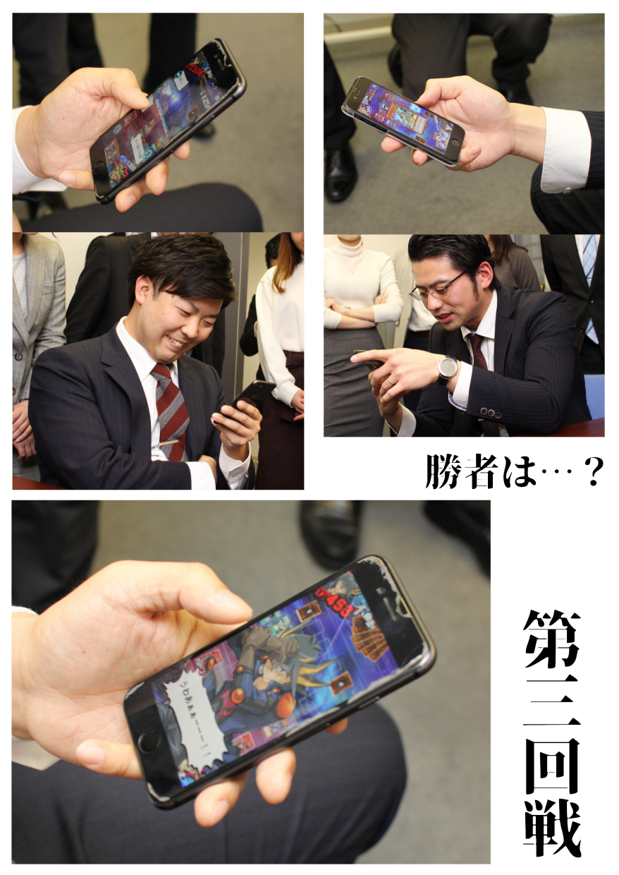 と思ったら最近局地的に当社で流行っているゲーム「遊戯王デュエルリンクス」の対戦をやるというじゃないですか!
