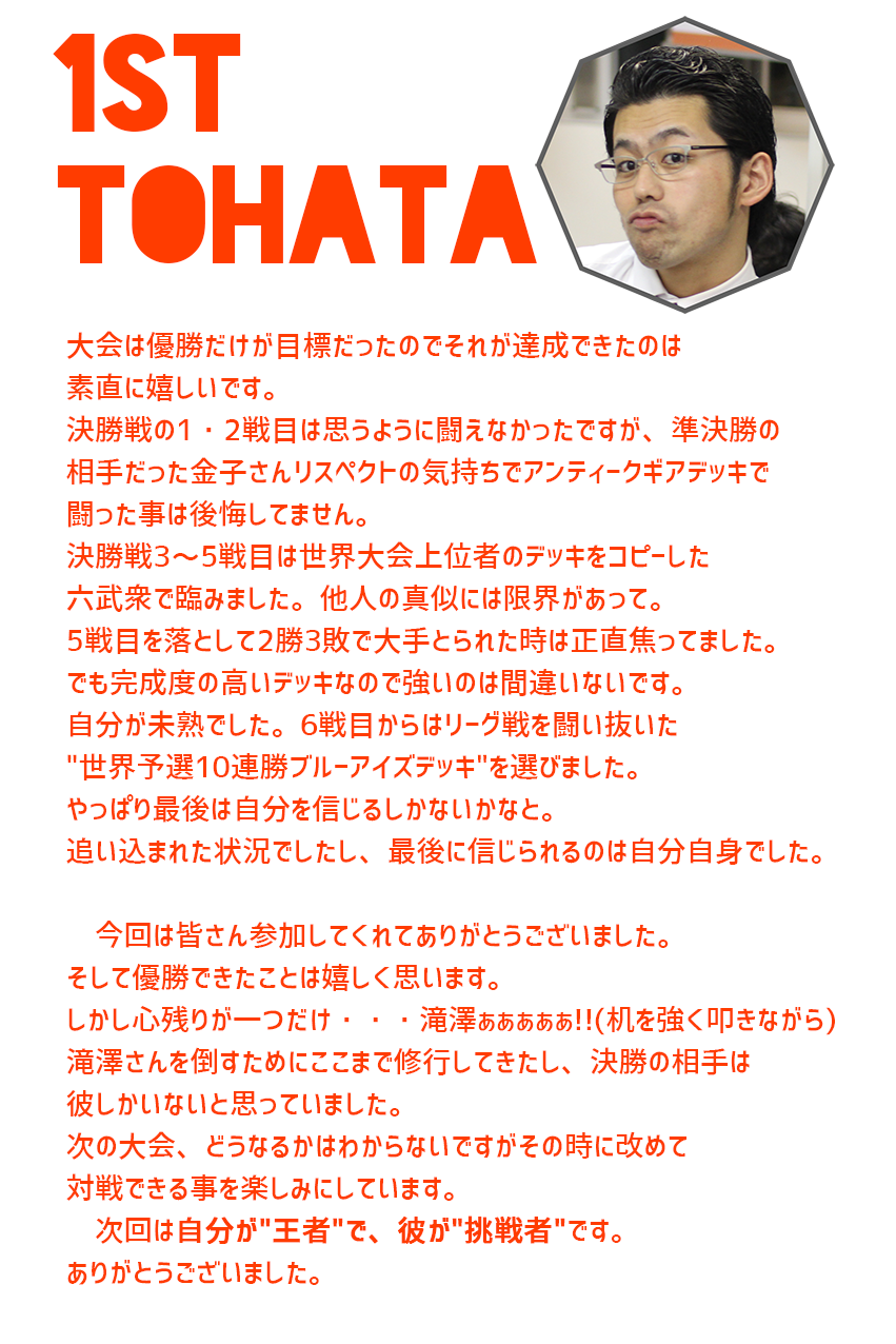 東端さん、自分で主催して自分で優勝しちゃうなんて…自作自えn…げふげふ!