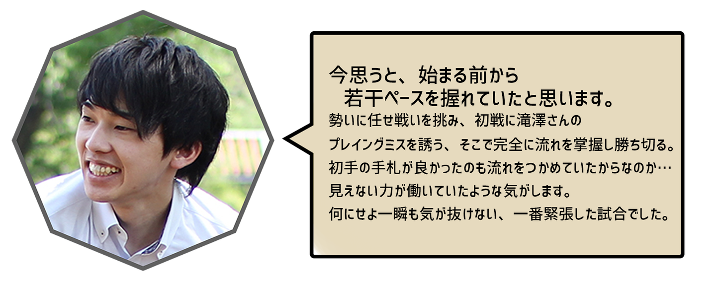 相手はAブロック4位通過の金村さん。お二人からコメントを貰いましたのでご覧ください!