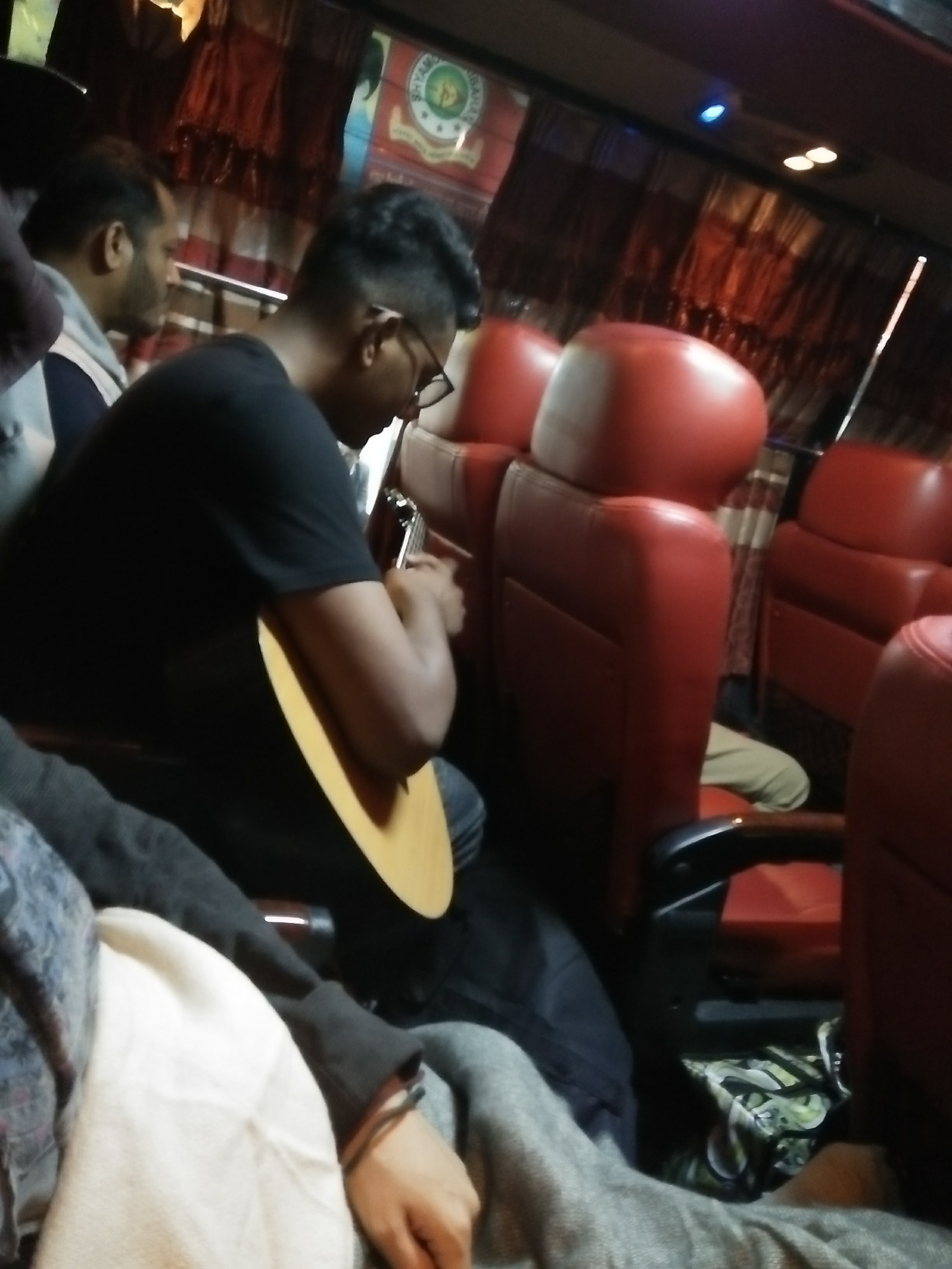 インド国境までのバスで隣に座った人がこんな感じでギターを弾き始め、