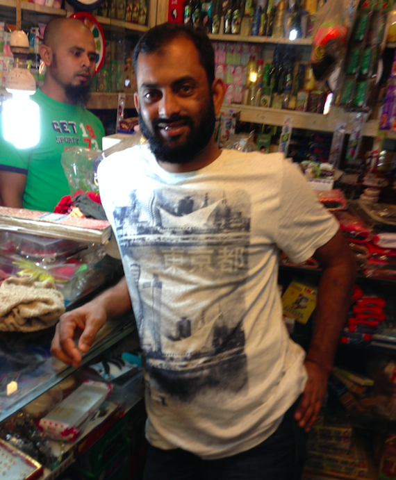 巷で人気の SuperDryTシャツはバングラデシュでもよく見られます。そしてこちら。東京都。これはどこなのだろうと。そんなおじさんに案内されて着いたのは布屋が集まる一角。色とりどりのきれいな布がもうそこらじゅうにあります。
