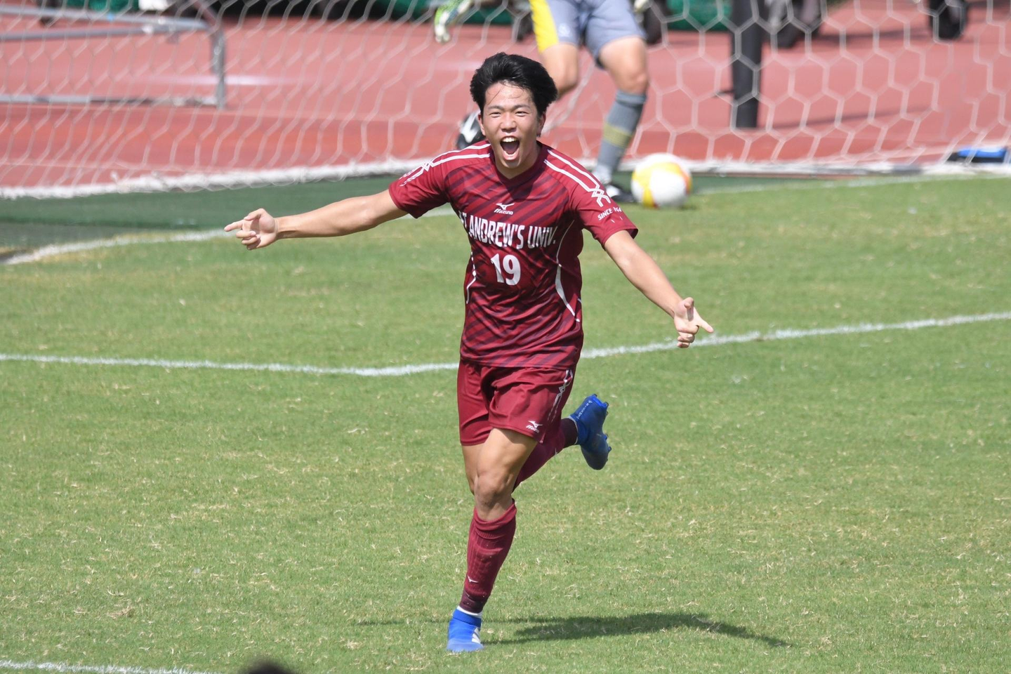 ゴールを決めたんでしょうか、いい表情😆大学時代、全国ベスト8の成績をおさめたサッカー少年でした!