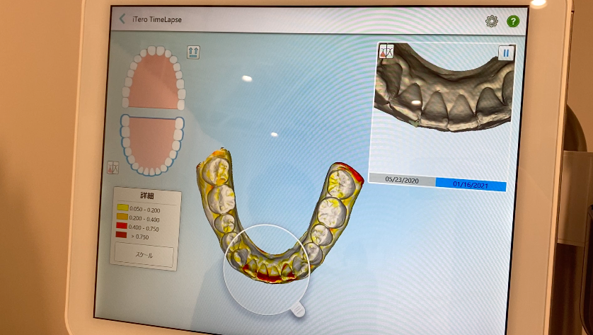 初回歯型スキャンは彼女も一緒に来ていたので、当時の私の歯並びをよく覚えていたようです。