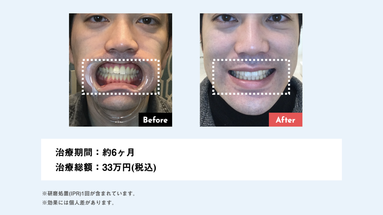 ✏️Writes note 当初はOh my teethことを「怪しい」とまで思っていたYutoさん。しっかり満足いただける結果が出たようで私たちも大変嬉しいです。 LINEサポートも活用し、疑問点なども気軽に質問しながら二人三脚で進めることができました!しっかり装着時間を守っていただいたことに加え、中盤にマウスピースのアップデートもあり、当初の予定よりも少し早めにご卒業🎉 コロナが落ち着いたら、旅行に行ってたくさん笑顔の写真を撮ったらぜひまた見せてくださいね。