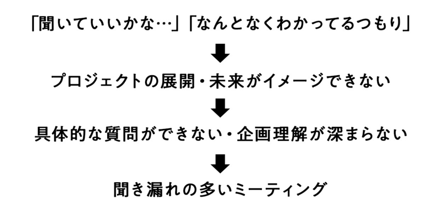 30分~1時間のミーティング。 しっかり聞いていたはずなのに質問が出てこない、書面でもらった以上の話ができていませんでした。 しかし、先輩方の「プロセス」と自分を比べていくと原因が分かってきました。