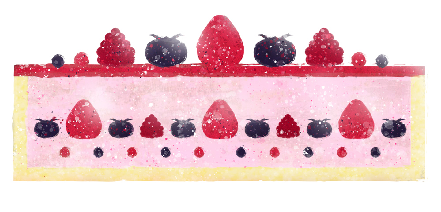 去年まではケーキの断面を写真でのせていましたが、今回はイラストレーションで表現することとなりました。企画の段階では特にスタイルなどは決まっておらず、ただ絵にしたいということだけ決まっており、自分でどのようなスタイルで表現するかを決めていきました。
