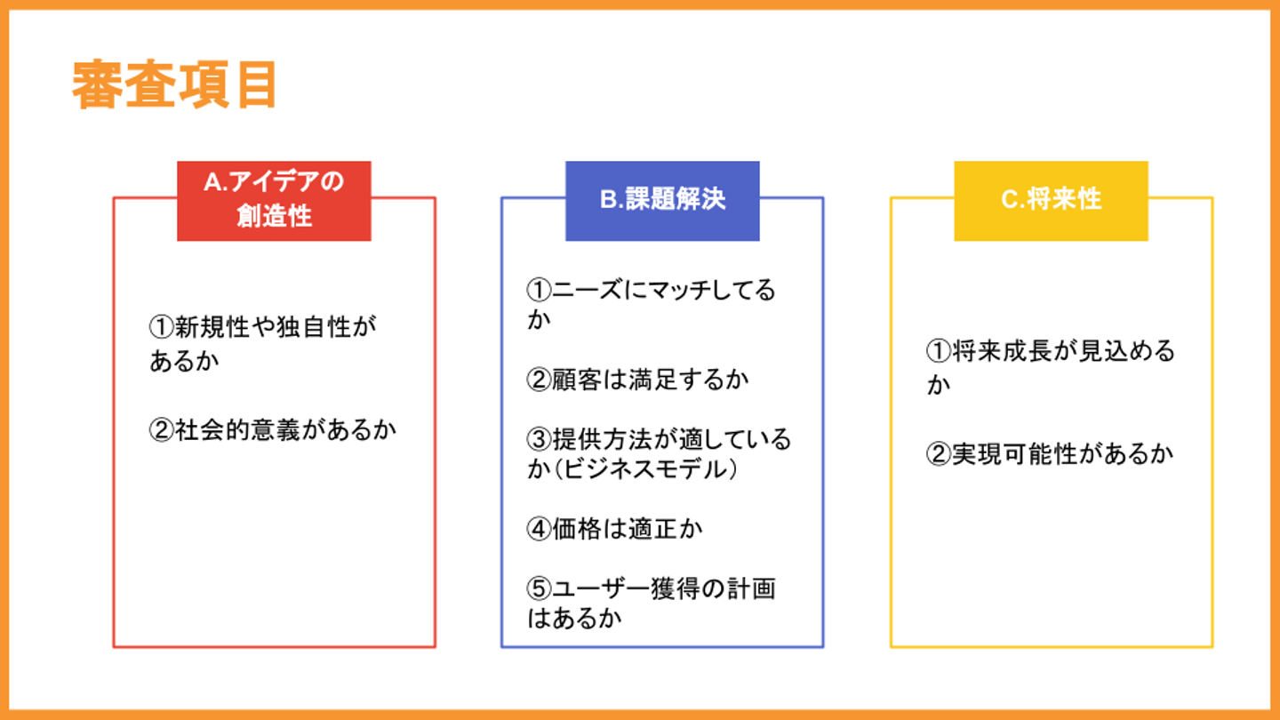 またプレゼン発表では審査項目を設けました。オイシックス・ラ・大地の実際の新規事業でも特に重視する観点を組み込み、実務に近い形で事業立案をしてもらいました。