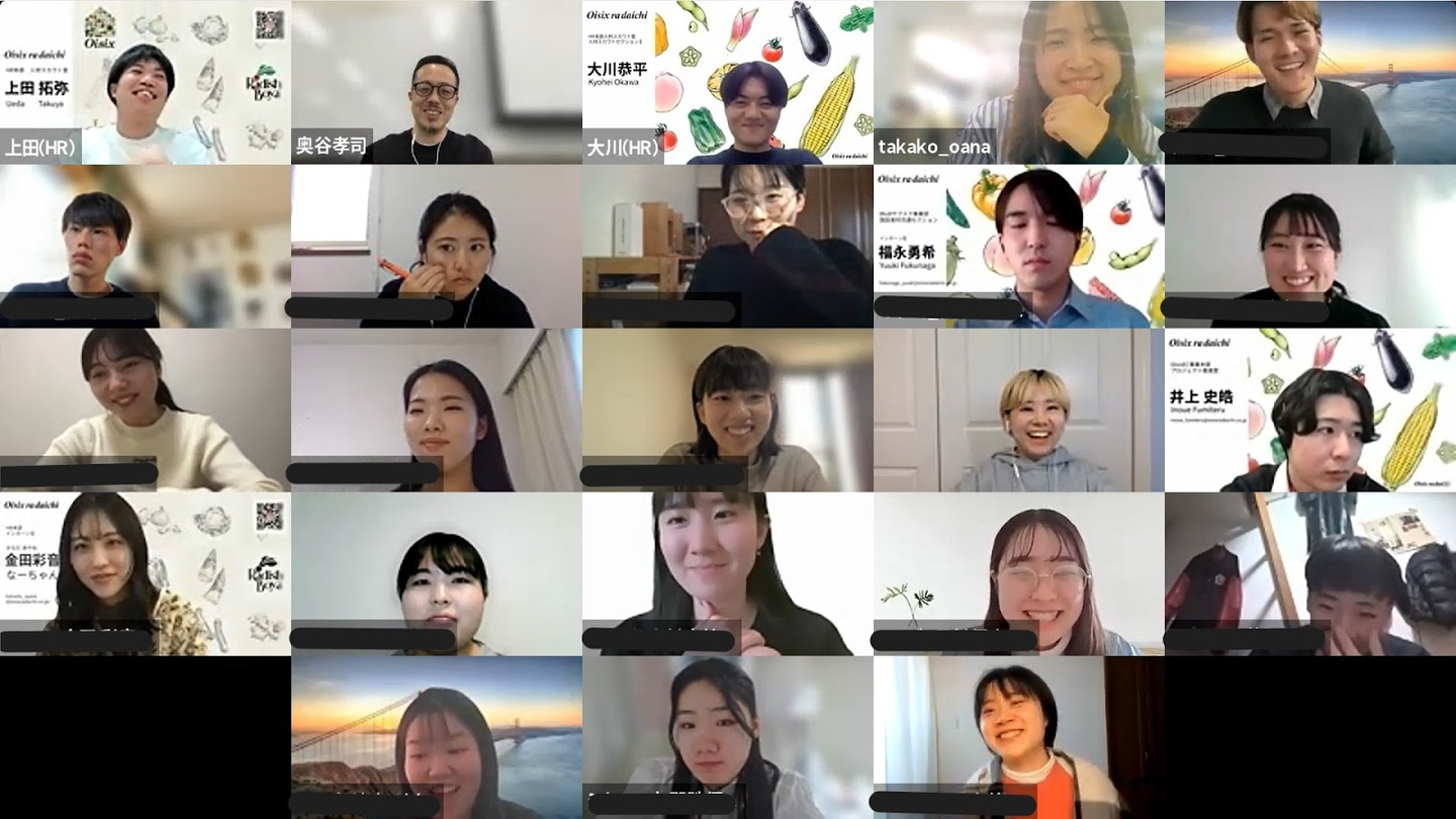 各チームには大学4年生の内定者インターンをメンターとして加えています!今回協力してくれた内定者は、全員オイシックス・ラ・大地で長期インターンをしており内定者の中でも特に熱量が高く優秀な人を集めました。