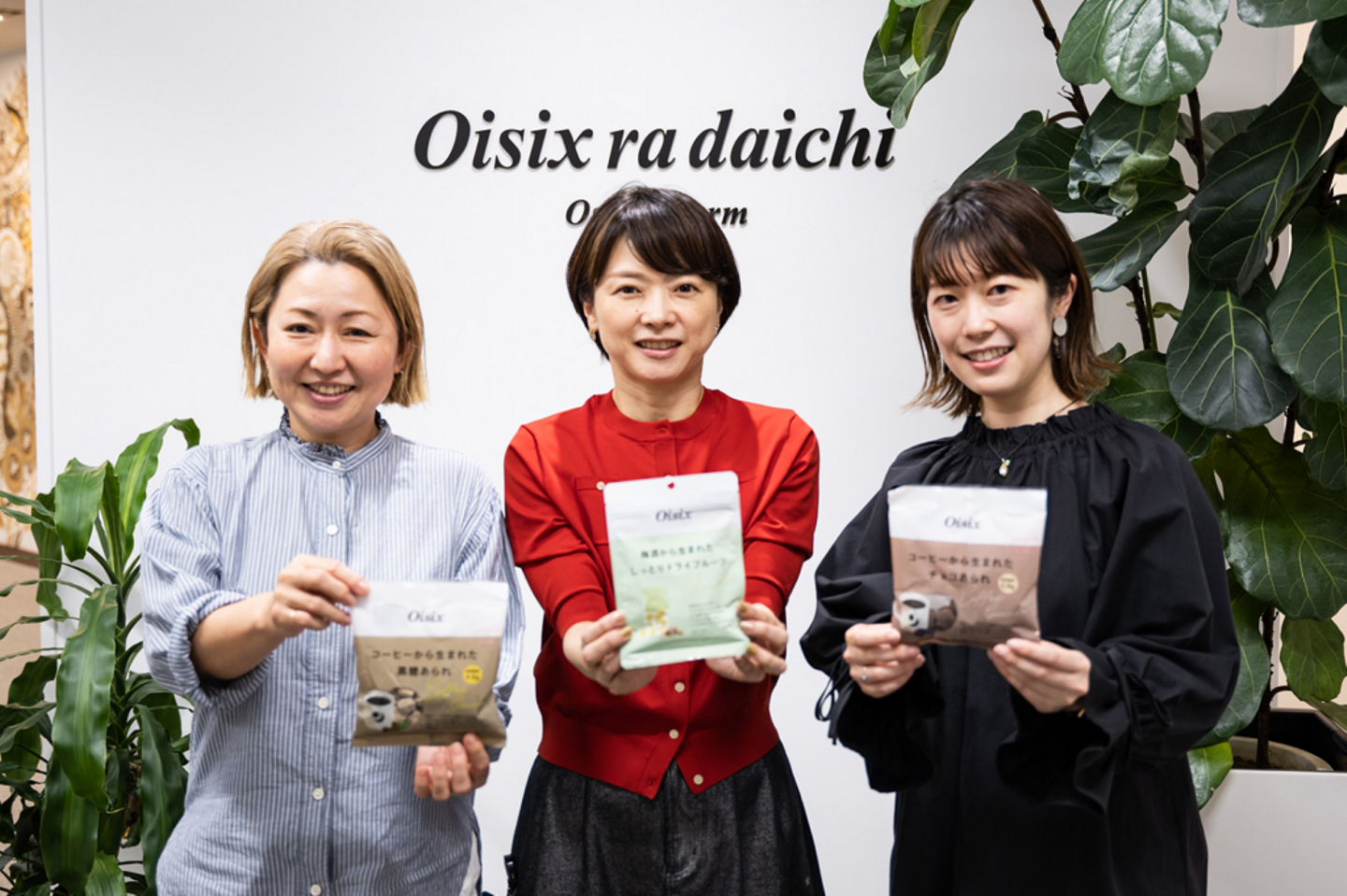 今回、『Upcycle by Oisix』の事業推進を担当するグリーン戦略室の東海林園子さん・三輪千晴さん、『Upcycle by Oisix』の広報を担当するコーポレートコミュニケーション部の丸尾幸子さんに、商品開発の裏側やブランドの展望について話を聞いてみました。
