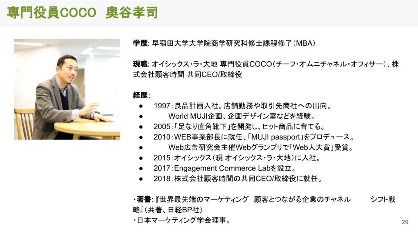 その後、弊社マーケティング専門役員、COCO (Chief Omni-Channel Officer)の奥谷からのインプットをしていただきました。