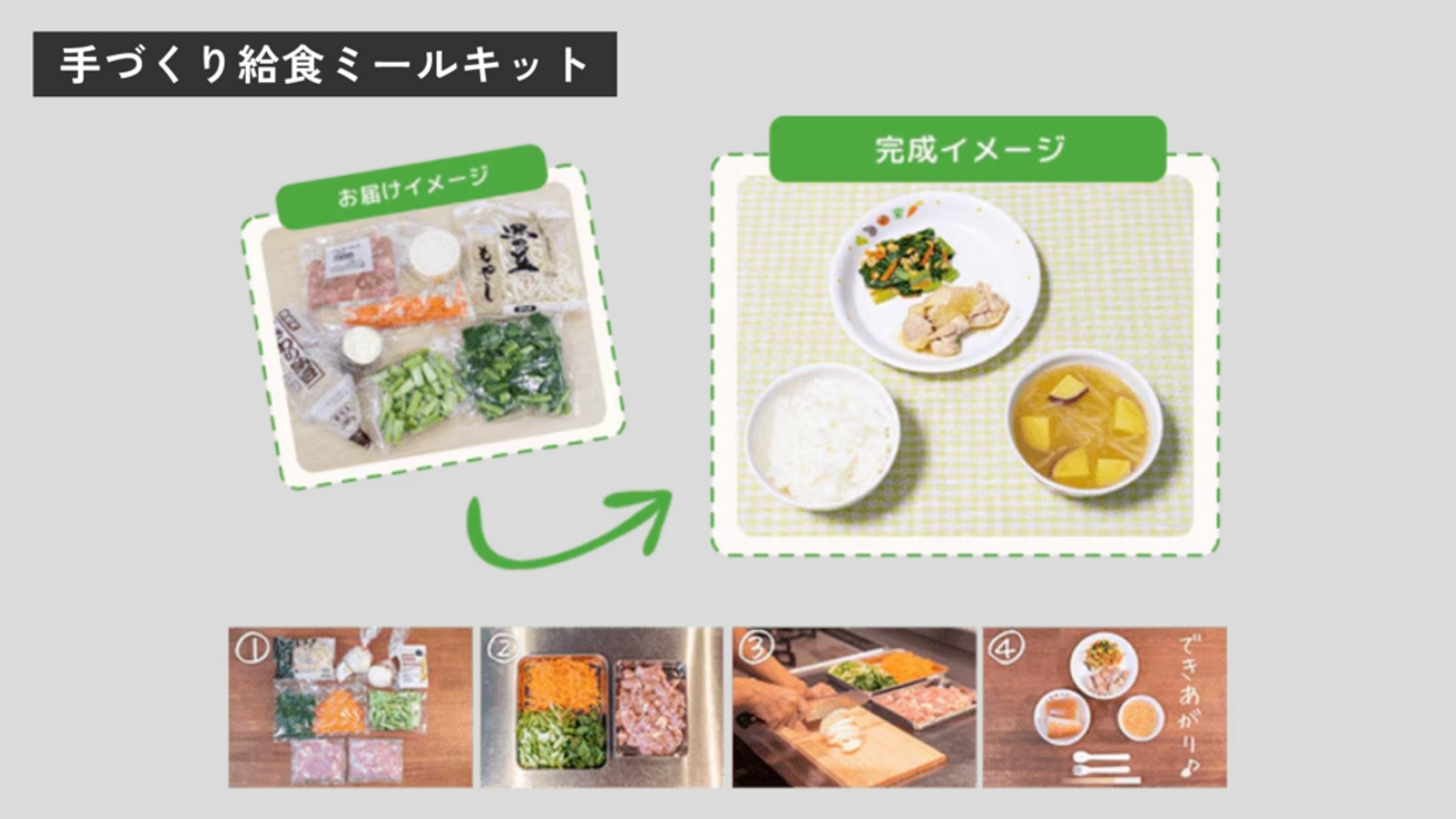 ひとつは、Kit Oisixのノウハウを活かして開発した、給食用のミールキットの提供です。