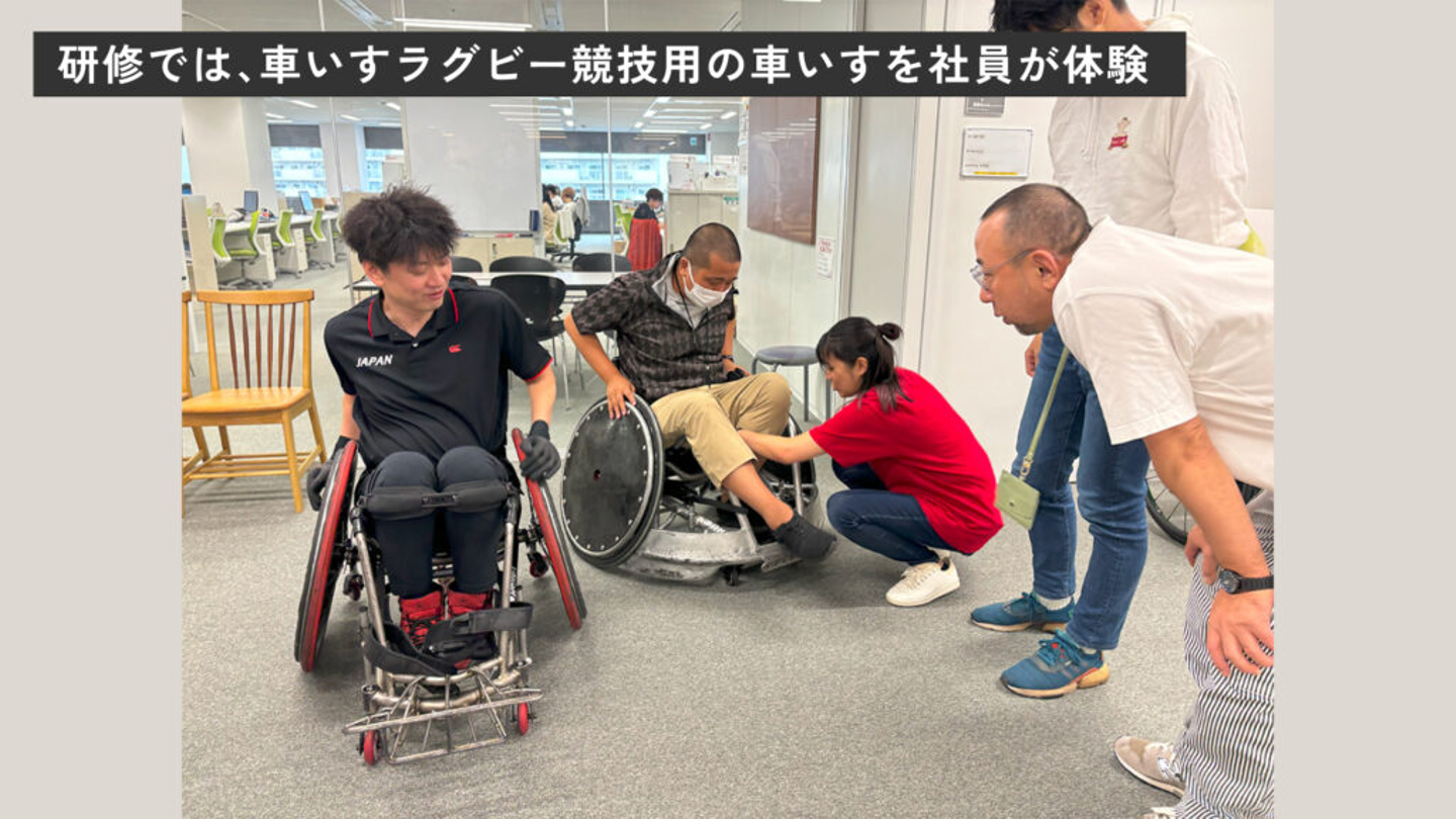 2つ目の全社研修は、障がい者をテーマにしたものとなります。パラアスリートの方お二人をお招きし、障がいのある方のお買い物や調理における実態を知り、誰もがお買い物や食事を楽しむためのサービスづくりや商品開発のヒントをいただきました。