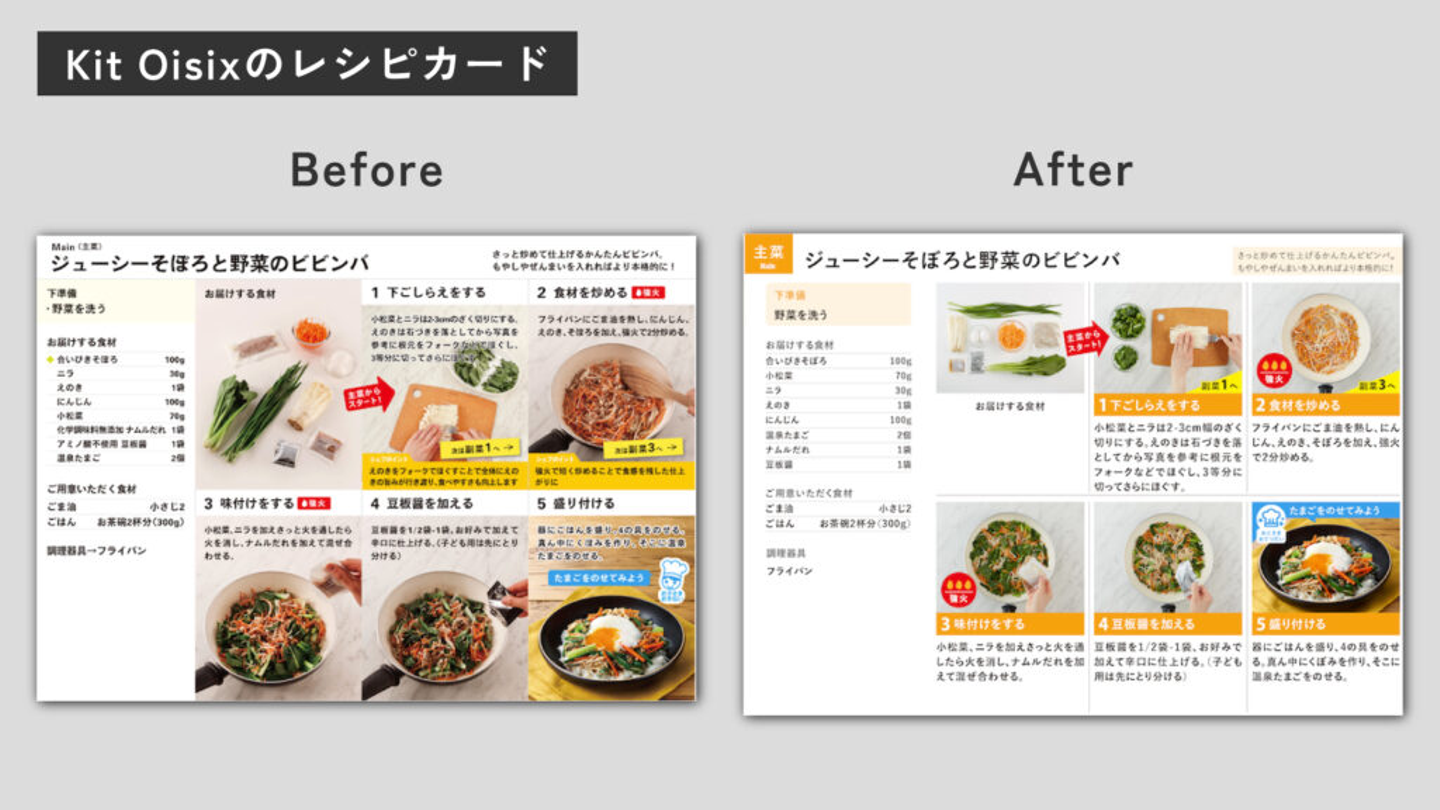 私自身、Kit Oisixの立ち上げに関わっていて、Kit Oisixには思い入れがあります。その後、Oisixの看板商品となるほど成長しているのに、レシピカードだけは当時のままで、モヤモヤした思いがありました。そうした意味でも、このプロジェクトをデザイナー主体で進めることができたのはよかったです。