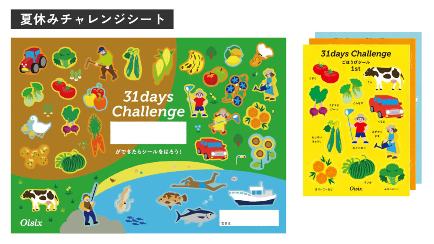 自分が担当したもので言うと、お子さまが何か頑張った時の「ごほうび」として貼れるシールと台紙のセット「チャレンジシート」が特に印象に残っています。この企画は定期的に行っていて、デザイナーが企画段階から関わっていきます。私が担当した時は、生産者さんや野菜をテーマに、様々なイラストを描いていきました。