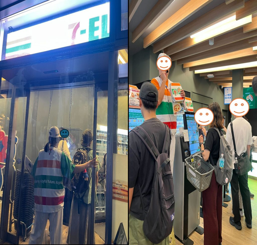 そういえば「近未来のセブンイレブン」が体験できる場所があると向かい、これまた30分並んで入場。出来立てのピザやパンが食べられるのが特徴で、タッチパネルの横には生身の店員さん…。