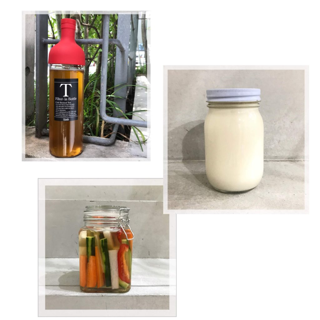 自宅では約1年前から甘酒やコンブチャ、ピクルスも作っています。