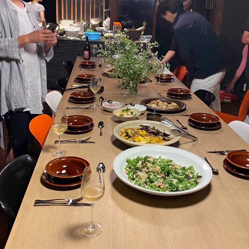HOSTELがオープン前の為、夕食はTAKIGAHARA FARMのメンバーやゲストとご一緒に。食事は小松市で採れた野菜を中心としたメニュー。