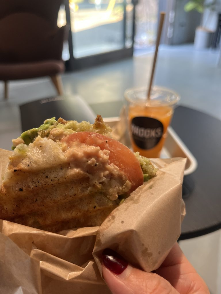 BROOKS GREENLIT CAFEでしか味わえないこの特別なパンは、パニーニクッカーで表面をカリっと焼き上げることによって、サワードゥ特有の酸味が旨味にかわり、サンドイッチに挟まれた野菜たちの美味しさをさらに引き上げます。