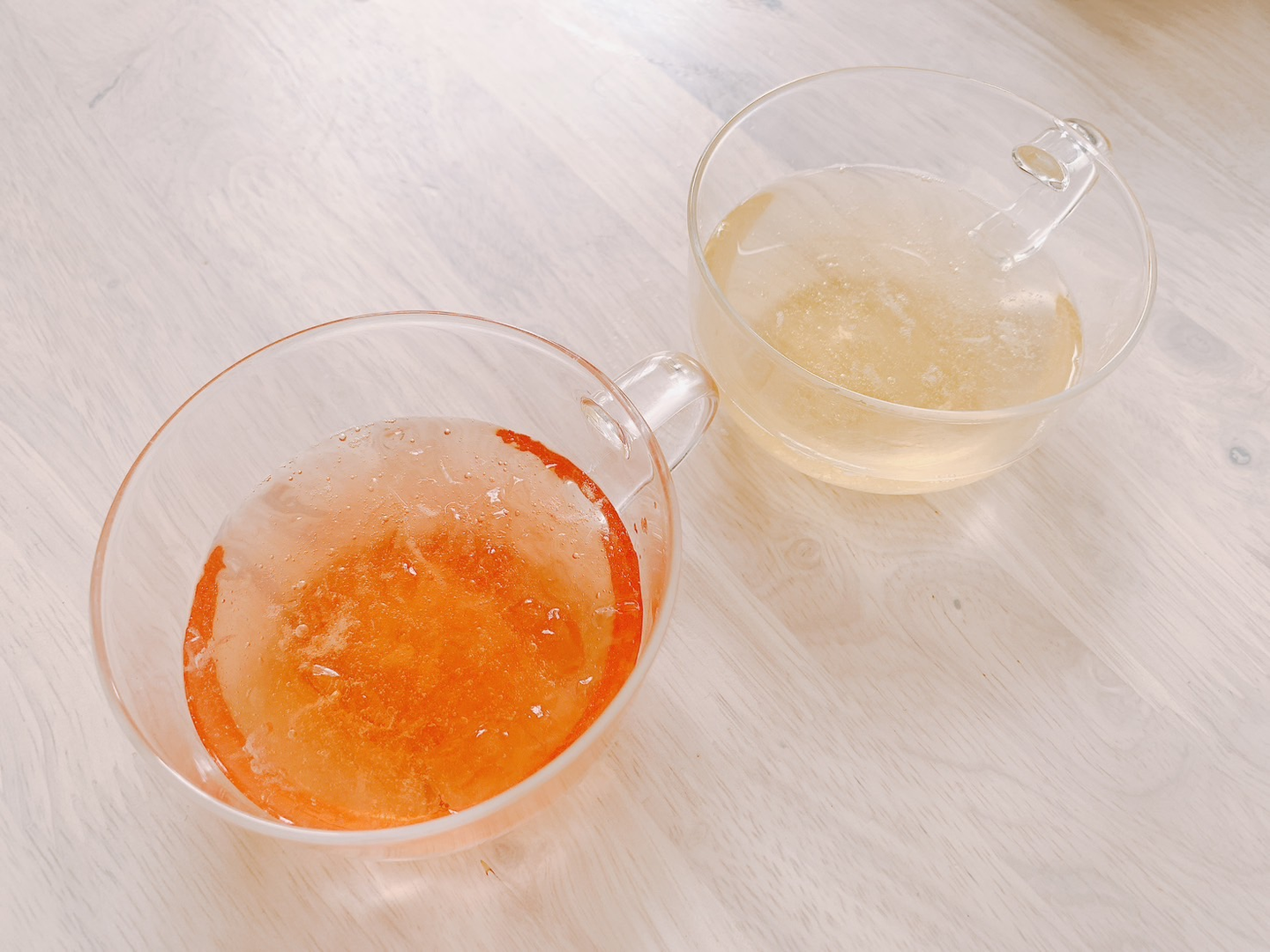 ヘルシーなデザート、画像は奥がORIGINAL、手前がSHISO FUTUREで作った寒天ゼリー