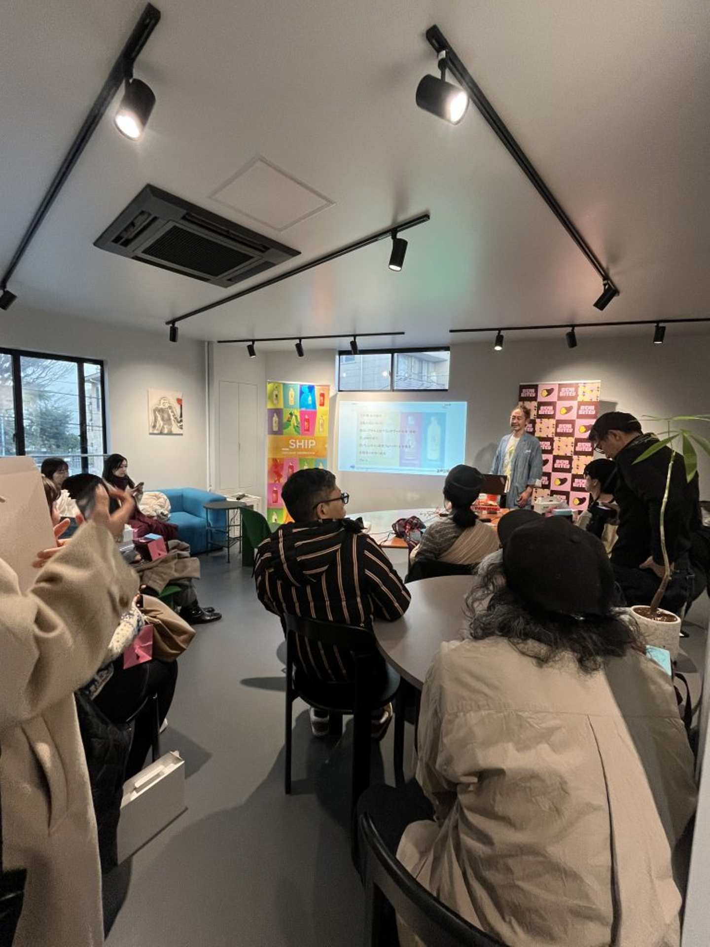 第1部は大泉工場の都内のオフィスとしても使用している2Fの「MIDORI.so」でプレスの方に向けてのお披露目会を行いました。