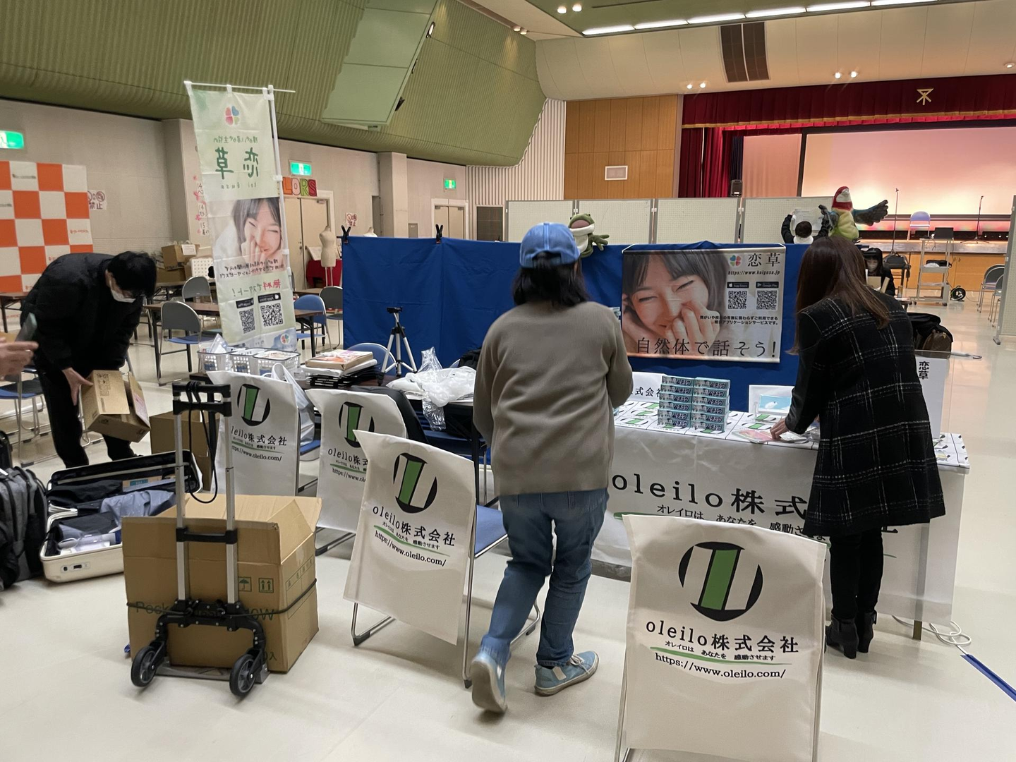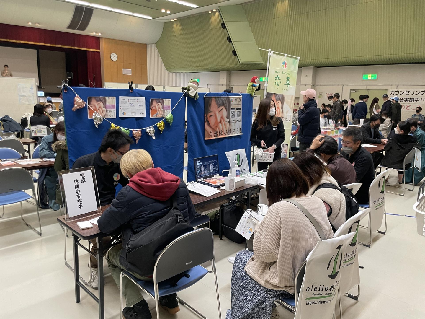 イベント会場につくと早速会場準備。みんなで作るブースは本当に楽しいんです。他のブースの中でも異色な私たち(障がいのある方たちの会場では婚活サービスは珍しいのです)なので、皆さんご挨拶に足を運んでくれました。