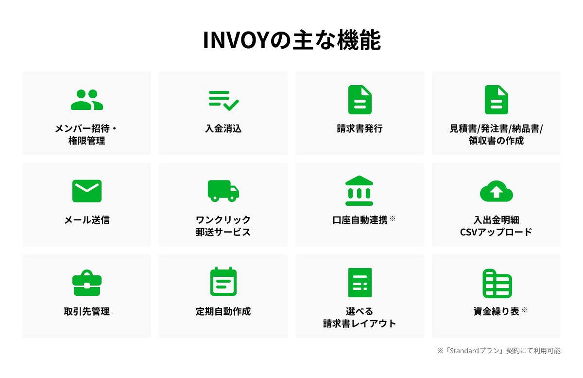 URL:https://www.chikugin.co.jp/さらに、2022年2月3日からINVOY「Standadプラン(有料)」の提供を開始。Standardプランでは、口座自動連携や資金繰り表の作成機能が新たにご利用可能となり、ユーザーの入出金管理をより包括的にサポートできるようになりました。従来の機能は「Freeプラン(無料)」として、引き続き無料でご利用いただけます。