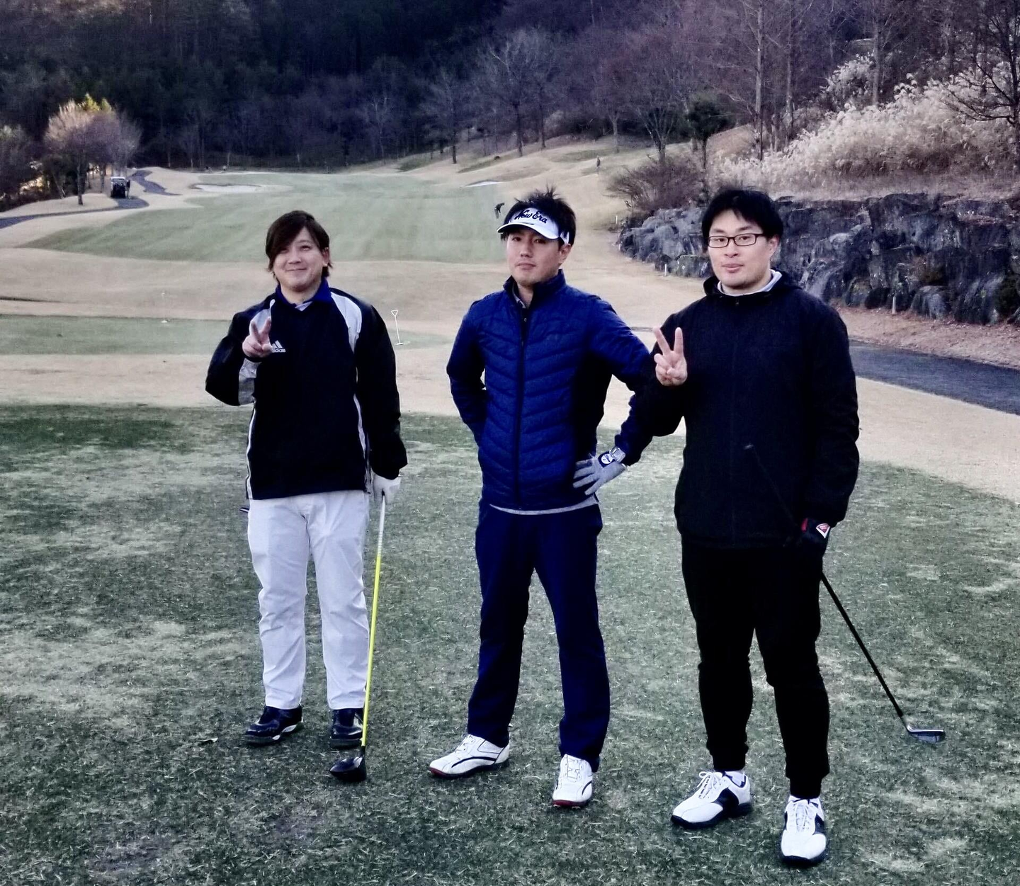 <今も趣味で続けているゴルフ/当時の仕事仲間と(写真右)>