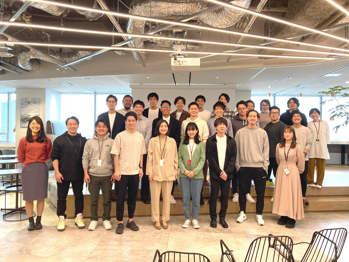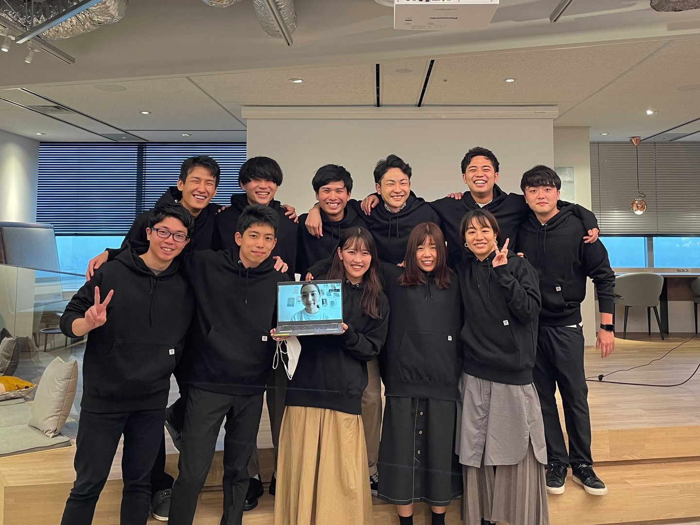 そして、10月は内定式もありました。内定者ウェルカムイベントも行い、毎年恒例のワンキャリアオリジナルパーカーの授与式の後、皆でパーカーを来て写真を撮影しました。