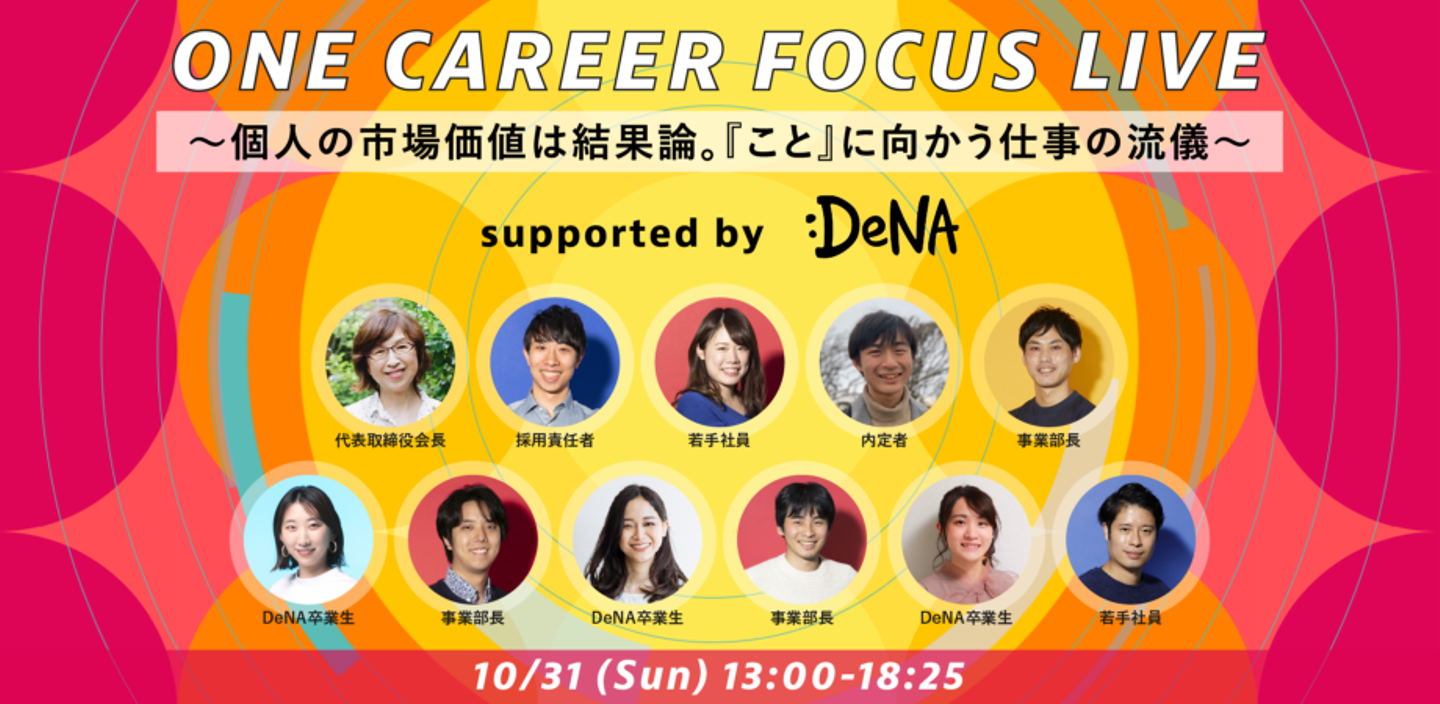 新番組として「ONE CAREER FOCUS LIVE supported by DeNA」をスタートしました。内定者から現役社員、卒業生、会長まで、いろんな人がDeNAについてのそれぞれの思いと体験談を5つのセッションで話してくださいました。キャリアパスやカルチャーなど伝わりにくい話も、多様な登壇者の関係性から垣間見える1日となりました。