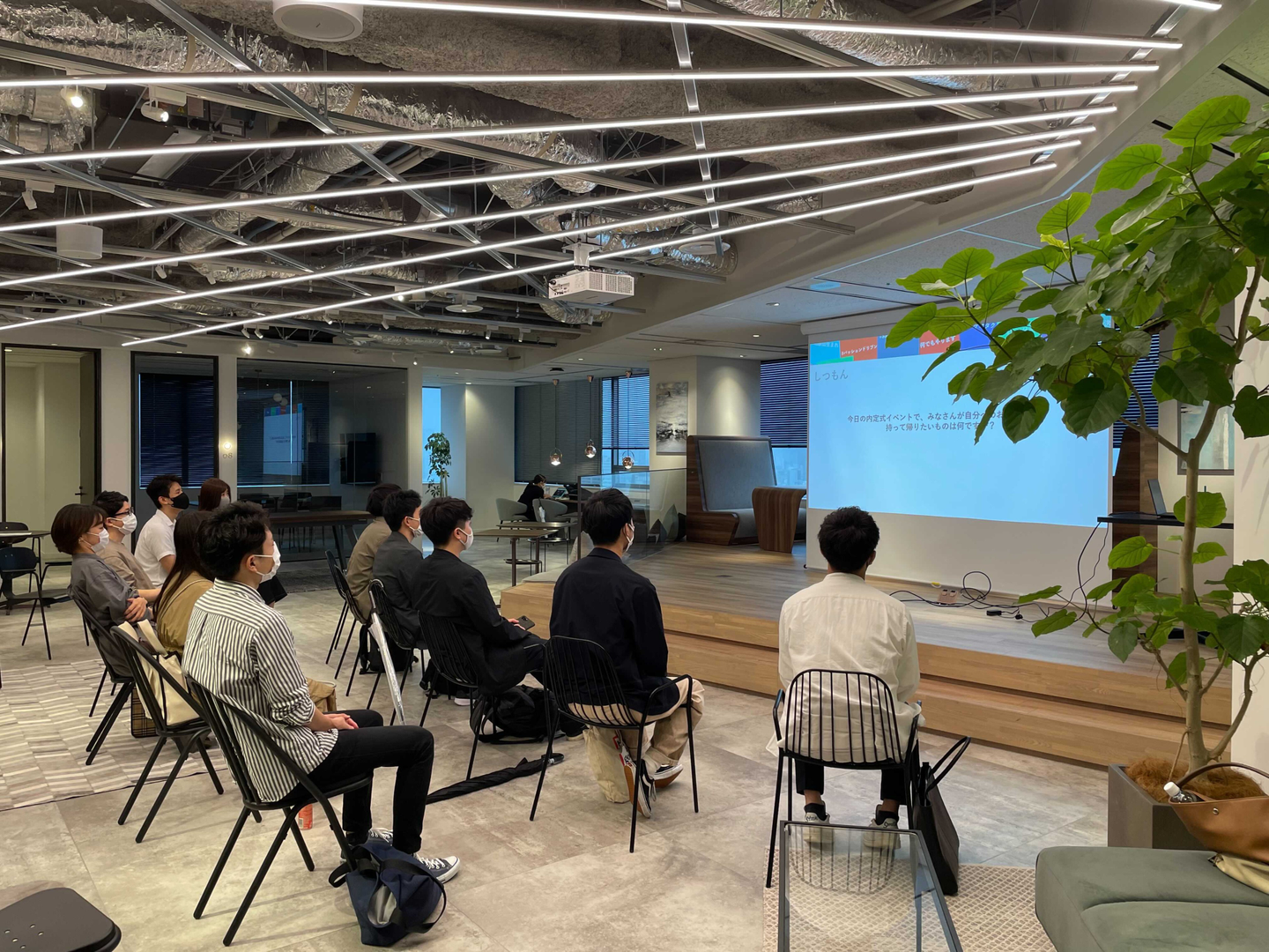 新オフィスでウェルカムイベントを実施。プレゼンや、カフェタイムなどで濃い1日目が始まりました。少し緊張していたメンバーも楽しんでくれたようです。