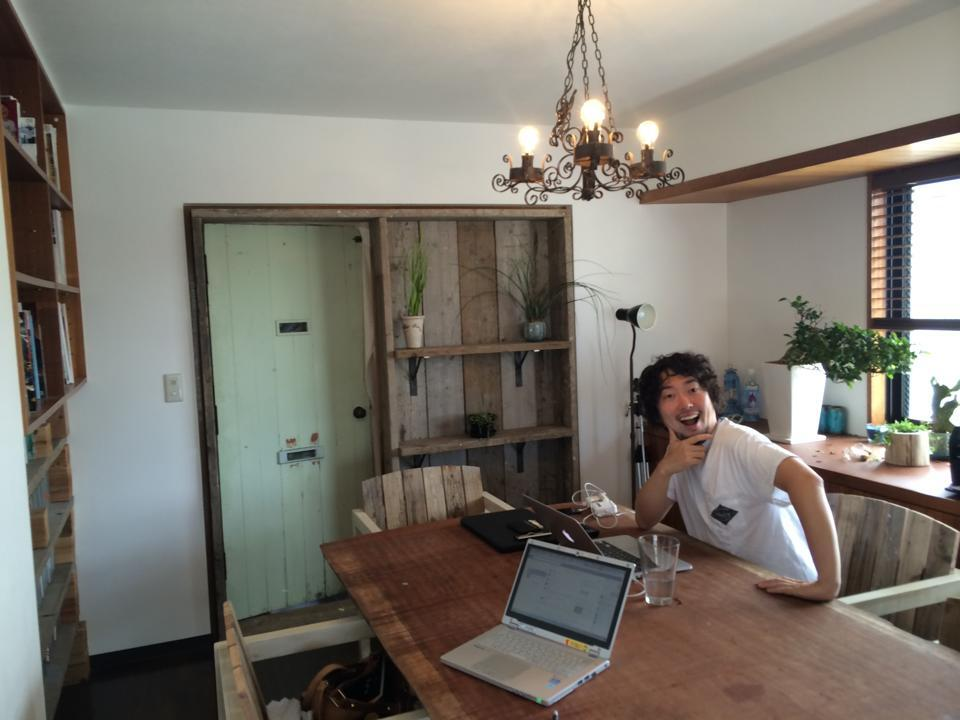 2014年創業当時代々木の3LDKマンションをオフィスにし、共同生活しながら活動を開始。そして、飛ぶ気配のない明石。細い。