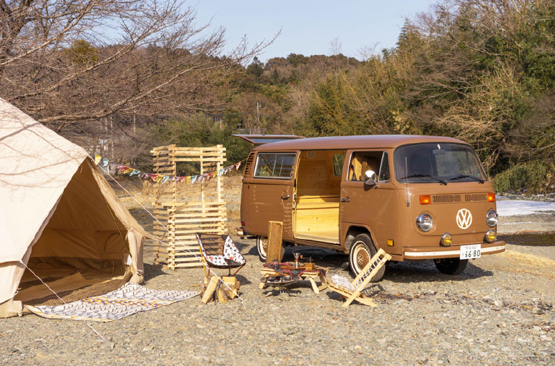 2019年にサウナワゴンという、ワーゲンバスを改造したサウナを作りました。いろいろな湖畔へ乗りつけてフィンランドのようなサウナ遊びができたらなと作ったものです。ほかのメンバーには内緒で、私がこっそり作って驚かせました。このサウナワゴンは現在COMORIVERに置いてあり、お客さまにもご利用いただけます。