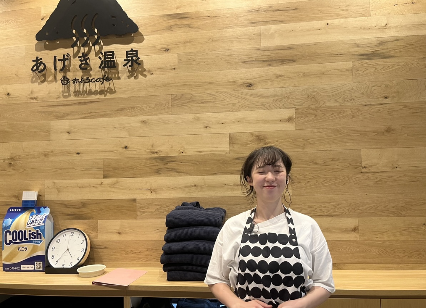 また、大学時代から温浴施設のアルバイトで熱波で活躍していた新卒入社2年目の遠藤さんは、入社してからもアウフグースを担当。今では、おふろcafé あげき温泉のチーフアウフギーサーとして大学生のスタッフさんにタオルの振り方などをレクチャーもしています。「遠藤さんのアウフグースを楽しみに仕事を早く終わらせてきた」というお客さまも、たくさんいるのです!