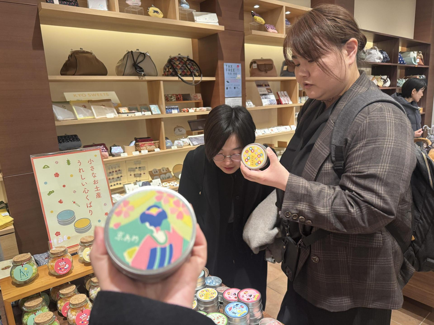 交流会の前に、まずは京都駅にある「松栄堂 薫々」とピープルズさまが運営する「カランコロン京都 京都駅八条口店」にお邪魔してきました。「カランコロン京都」は京雑貨の温かみと可愛らしさで溢れる店舗。玉川温泉支配人の加藤さんはカランコロン京都の大ファンで、とても目が輝いていました。