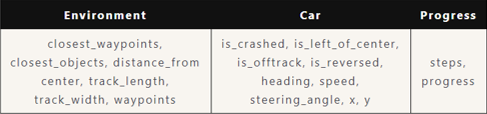 There are a few parameters we received during training that can be used to calculate the reward functions: